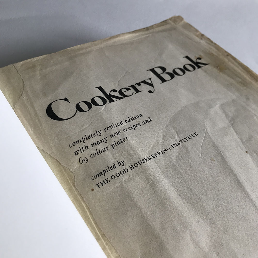 This Good Housekeeping Institute Cookery Book has seen a lot of family dinners in it’s time. The front cover had long since disappeared, the spine was covered in tape, some pages were detached, and a number of those that remained attached were in pretty rough shape. The best part, though, was finding dried rice still attached to the title page.